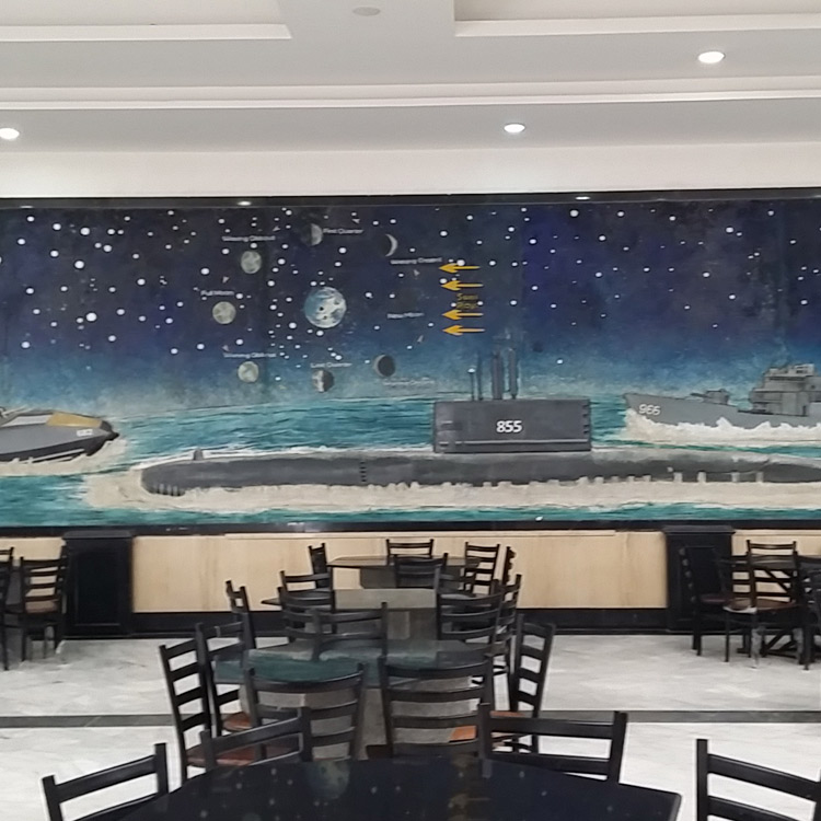 Mural work of mosaic and sculpture and prominent roads copper- colored epoxy and a length of 11 meters and height of 2.25 meters in 2011 .